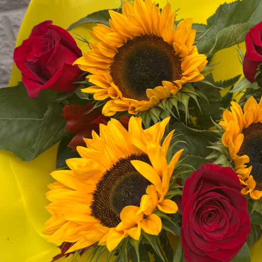 Ramo Girasoles y rosas rojas